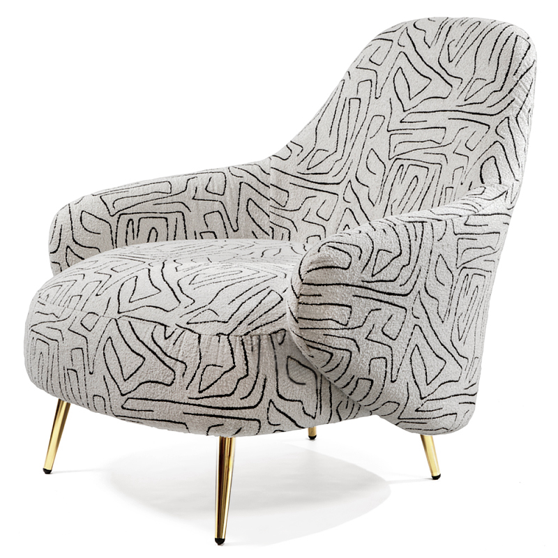 Кресло мягкое с принтом на золотистых ножках Onlooker Черно-белый Золотой в Воронеже | Loft Concept
