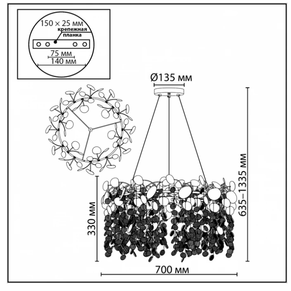Д 70 см 10 ламп - 5.9 кг - Площадь освещения, м.кв. 12 м2