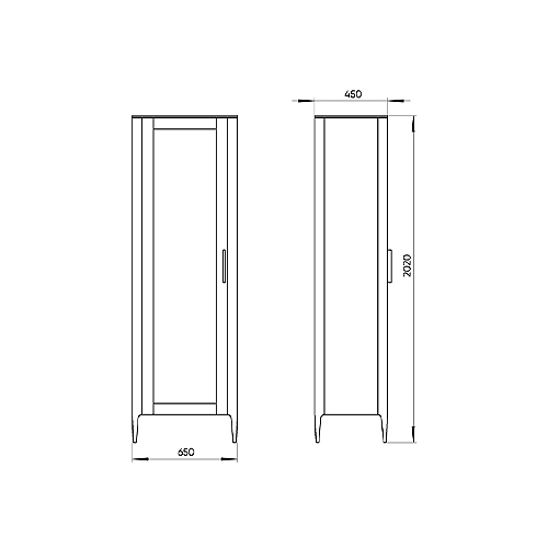 Витрина светло-серая со стеклянной дверью с 4-мя полками и 2-мя ящиками Type